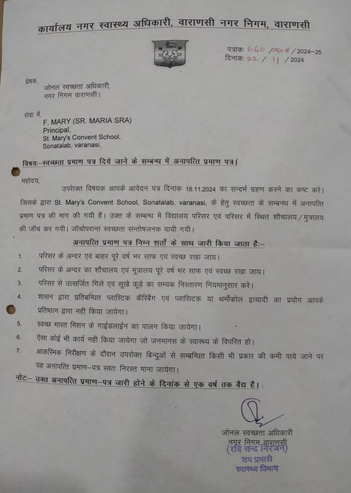 | NAME OF SCHOOL | ST. MARY'S CONVENT SCHOOL, SONATALAB, VARANASI |